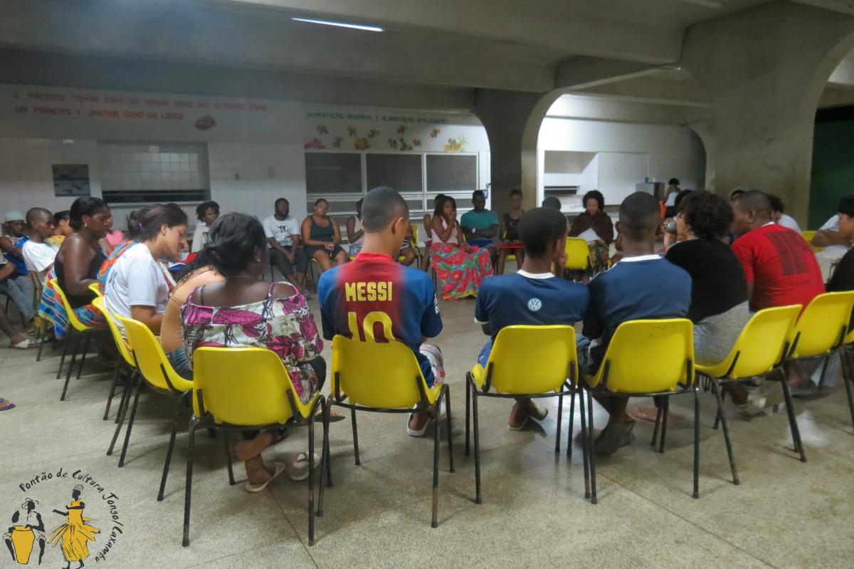 Ainda pela manhã foi realizada uma roda de conversa sobre acesso ao ensino superior. Além das experiências contadas por jovens jongueiros que já chegaram à universidade, a plateia recebeu uma cartilha informativa a respeito dos métodos de seleção das principais instituições do Sudeste. Os participantes se queixaram da falta de incentivo nas escolas quanto aos mecanismos de ingresso nas instituições. À tarde, o debate se aprofundou em torno das políticas de ação afirmativa. Foram apresentadas frases com argumentos contrários às cotas e reportagens a respeito do assunto. Foi um bom momento para tirar dúvidas e perceber que a cota é um direito da população negra.